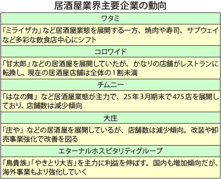 居酒屋業界主要企業の動向