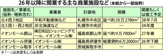 2025年は、「ニュウマン高輪」などの商業施設が開業して話題となっているが、26年以降も様々な施設がオープンする予定だ。26年の案件として目立つのは大井町、心斎橋など都市部の案件で、郊外ではイオンモールが東京都八王子市や福島県伊達市で開業を控えている。27年以降も東京駅前の「Torch Tower」、渋谷駅の「渋谷スクランブルスクエア第Ⅱ期(中央棟・西棟)」など都市部の案件が目立つ一方、中長期的にはアウトレットなど郊外の商業開発も複数控えている。今後開業する新規商業施設をまとめた。