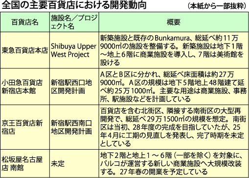 全国の主要百貨店における開発動向