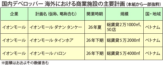 国内デベロッパー 海外における商業施設の主要計画