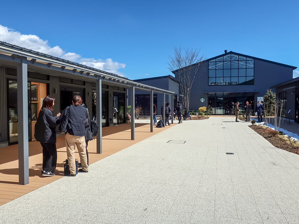 三菱地所(株)、(株)アクアイグニス、カルチュア・コンビニエンス・クラブ(株)の3社は、軽井沢T-SITEを開業した。新幹線が乗り入れる軽井沢駅の真隣で、駅から直結する階段も設けた好アクセスの施設だ。ここに「I'm donut?」など甲信越や軽井沢エリア初出店となり、地元客を集客できる店舗のほか、長野ワインや地酒などを購入できる「aVin stand Karuizawa」、信州蕎麦を味わえる「OSOBAR STATION」など観光客が信州を感じられる店舗を設けた。「SHARE LOUNGE」など地元客、観光客がともに過ごせるスペースも設けており、軽井沢の新たな拠点となる。軽井沢としては久しぶりの新規商業施設であり、話題性は十分。地元客の期待も高いようだ。