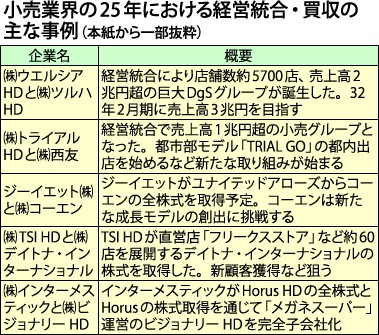 小売業界の25年における経営統合・買収の主な事例