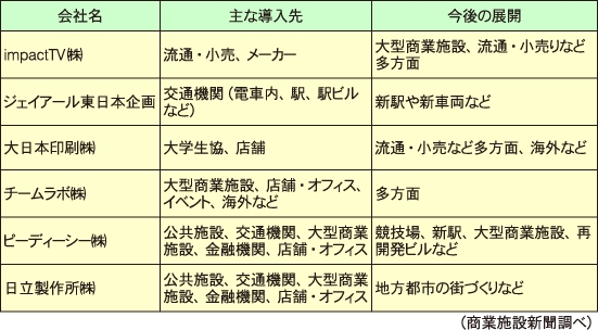 デジタルサイネージ 主なサプライヤー各社の現状と今後