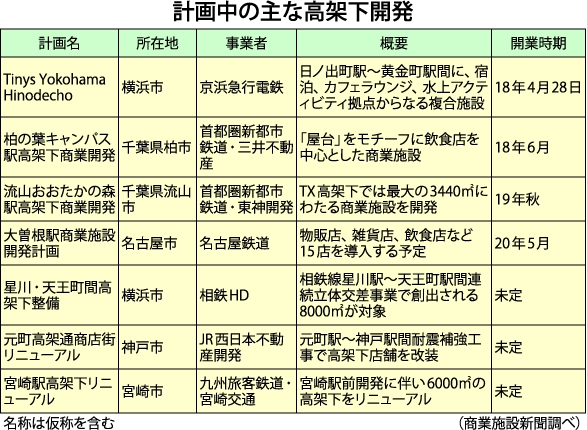 鉄道高架下の商業施設開発が進化している。人を囲いがちな駅ビルに対して、高架下商業施設は街に面しているだけに、エリアの回遊性向上、コミュニティ空間創出など、街づくりを意識したものが増えてきた。また、デザイン面での工夫やユニークな機能を導入するなど、アイデアがキラリと光る個性的な施設も少なくない。