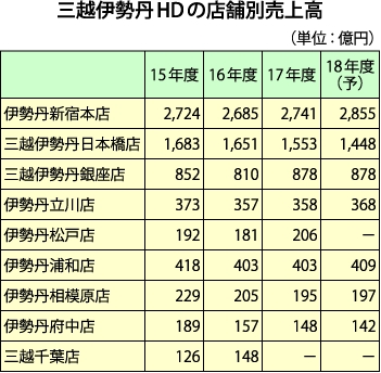 三越伊勢丹HDの年度設備投資額と店舗別売上高