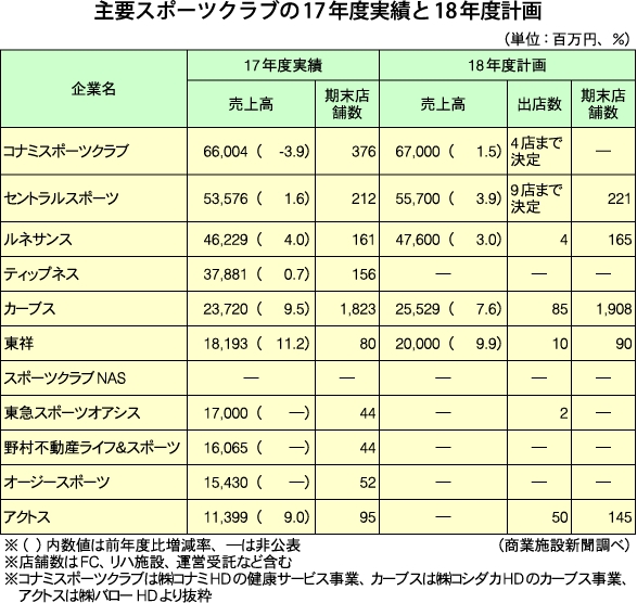 大手を中心にスポーツクラブ業界が活況・拡大している。総合型によるシニア層の利用や獲得が目立っていたが、ここ最近は若者、ビジネスマンなどをターゲットにした24時間営業、新業態なども続々開業。業界全体では2018年度、セントラルスポーツ、アクトスなどを中心に出店数増加が見込まれる。加えて、“海外発”のトレンドは勢いを増し、目新しさや機能性を強みに多店舗展開を加速する。健康や運動ニーズが高まり、さらには市場規模5000億円も見えてきた。