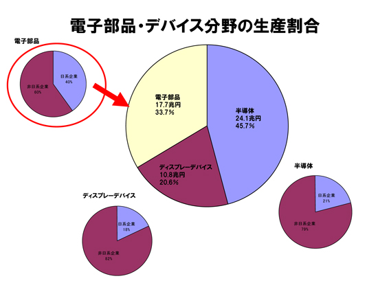 「日本の電機産業が苦境にあることは間違いない。とりわけ家電産業が厳しい。半導体や液晶の分野においても日本勢の後退が問題になっている。しかしながら、一般電子部品の分野については、日系が世界シェアの4割を握りエレクトロニクスの砦を守っているのだ」