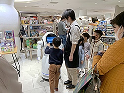 野上 (株)三越伊勢丹(東京都新宿区)と連携し、検温・案内機能を持つAIコミュニケーションロボットを開発・実証したほか、伊勢丹新宿店本館の知育玩具売り場にロボットを設置し、ロボットが子供の年齢に合わせたコンテンツや商品の紹介・案内する取り組みも実施した。