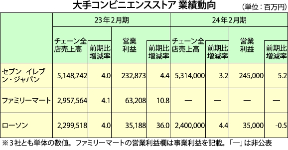 大手コンビニエンスストア 業績動向